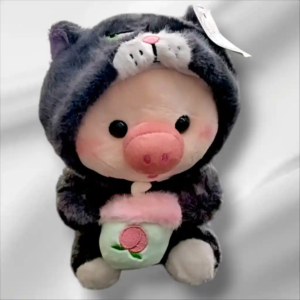 Cerdito de peluche, con disfraz de gato