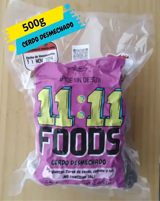 CERDO DESMECHADO 500g, CONGELADO Y EMPACADO AL VACIO, COCINADO CON CEBOLLA Y AJO, NO CONTIENE SAL, DESCONGELAR, CALENTAR Y CONDIMENTAR AL GUSTO!!!