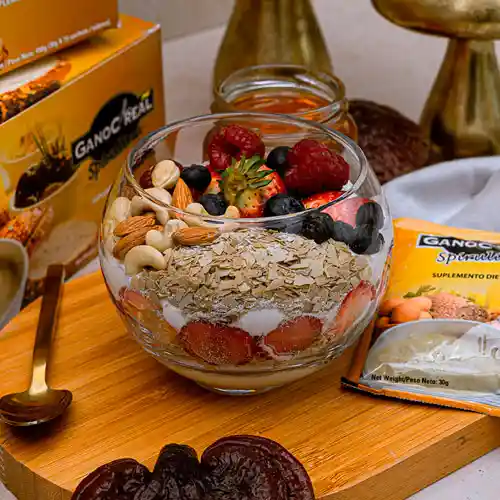 Cada bocado es una explosión de sabor, con una mezcla única de cereales, azúcar y crema no láctea. Además, hemos añadido espirulina y extracto de Ganoderma lucidum para ofrecerte una opción deliciosa y nutritiva.
