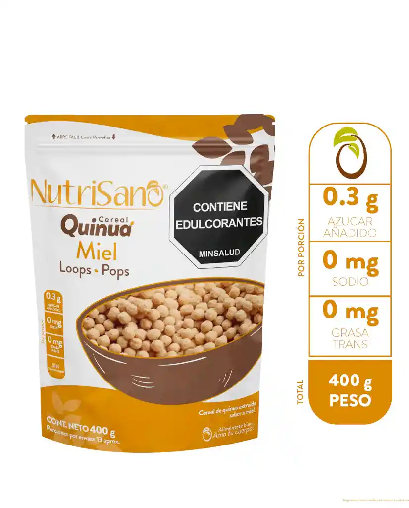 Cereal quinua pop miel Libre de gluten • Este cereal de quinua es una explosión de beneficios para tu salud diaria. Descubre cómo la quinua, un superalimento ancestral, puede elevar tu desayuno a nuevos niveles de vitalidad y bienestar.• Proteínas Completas: La quinua es única por ser una fuente de proteínas completas, proporcionando todos los aminoácidos esenciales necesarios para el desarrollo y la reparación de tejidos.• Rica en Fibra: Con una alta cantidad de fibra, nuestro cereal de quinua favorece la salud digestiva, ayudando a mantener un sistema digestivo equilibrado. • Nutrientes Esenciales: La quinua aporta vitaminas y minerales esenciales como hierro, magnesio y calcio, contribuyendo a la salud ósea y al equilibrio general del cuerpo.