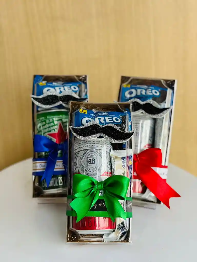 Cerveza en empaque alusisvo al dia del padre, puede ser heineken o budweiser, trae dulces surtidos.