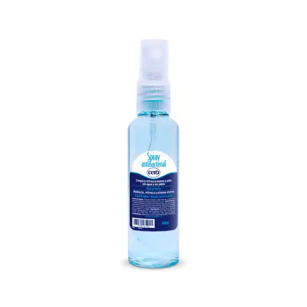 Cero Spray Antibacterial 69% Alcohol, Humecta, Refresca y Elimina Olores Variedades: Aloe, Citrus Mix, Cold Breeze Beneficios: 69% Alcohol, Limpia y Refresca Manos y Pies Sin Agua y Sin Jabón y Humecta Modo de Empleo Presione la Válvula y Haga Aspersión a Unos 20 cm Sobre Las Manos o Los Pies y Permita Que se Seque. Advertencias Producto Inflamable. Consérvese en un Lugar Fresco. Únicamente Para Uso Externo. Evite el Contacto Con Ojos y Mucosas Manténgase Fuera Del Alcance de Los Niños. Si Observa Alguna Reacción Alérgica, Suspenda su Uso y Consulte a su Médico.