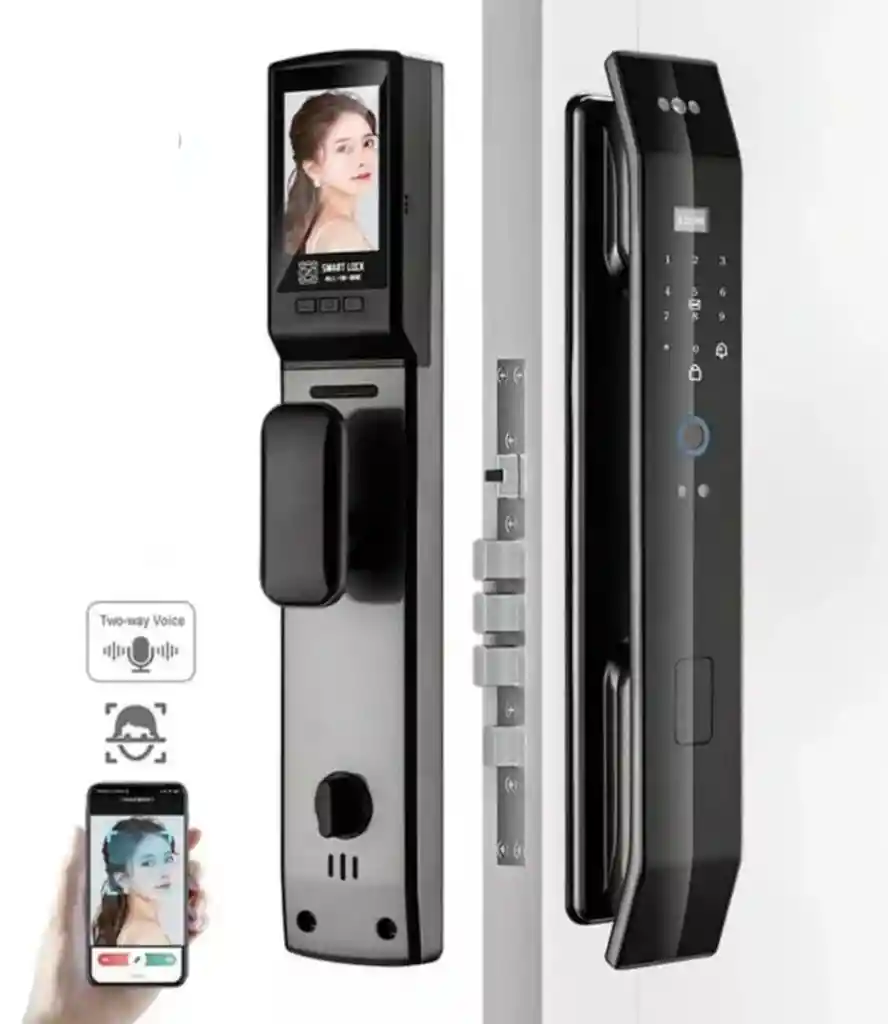 Cerradura Digital con biometría facial - TUYA con Pantalla: * Apertura por reconocimiento facial * Captura de fotografías. * Apertura por huella digital. * Apertura por password * Apertura con tarjetas * Apertura por llave física * Apertura por medio de la aplicación TUYA. Tiene la opción de video llamada (Video Timbre) por medio de la aplicación TUYA con pantalla. Tuya Cerradura Inteligente de Reconocimiento Facial 3D con Cámara Cerradura Inteligente Wifi App Huella Digital Cerraduras Inteligentes Características del producto: * Material de aleación de aluminio de alta resistencia, resistencia a la corrosión. * La puerta se puede abrir con llave en cualquier condición. * Si la batería está apagada, hay un puerto USB como carga de emergencia. * Después de cerrar la puerta, el pestillo saltará y se bloqueará automáticamente. * Fuente de alimentación de batería de litio de carga reutilizable, protección del medio ambiente. * El sensor biométrico de huellas dactilares One-Touch-Access en el lector, le brinda la mejor experiencia de seguridad. * La alarma sonará automáticamente cuando la energía sea baja, y también se dará si el desbloqueo no tiene éxito muchas veces. Contenido: * Cerradura 3D * Tornillería y Manual de instalación * 2 Tarjetas * Batería Litio * Mortise 24 x 240 mm