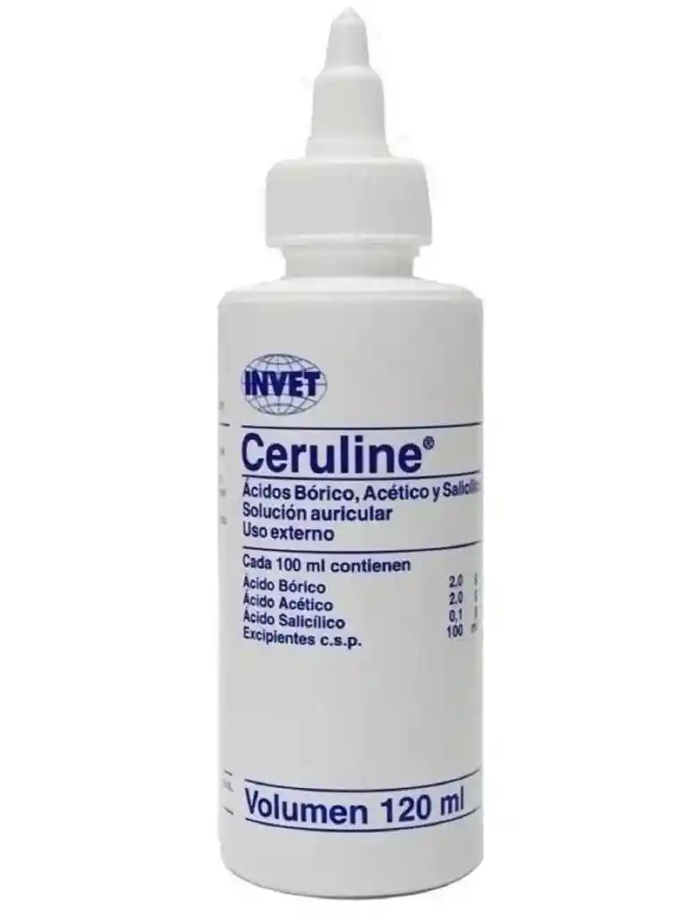 Solución AuricularCOMPOSICIÓN: Ácido bórico 2g/100ml, Ácido acético 2g/100ml, Ácido salicílico 0,1g/100mlINDICACIONES: Limpiador auricular indicado en Perros y Gatos, ayuda a remover material celular y cerumen. Sirve como limpieza de rutina y controla olores del canal del oído. También puede emplearse después del baño y para facilitar el examen de oído.