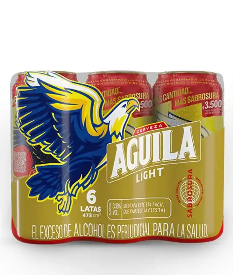 La Cerveza Aguila Light en presentación de latón de 473 mL por 6 unidades es una bebida tipo lager que ofrece un perfil ligero y refrescante, ideal para quienes buscan disfrutar una cerveza con menor contenido calórico sin perder el sabor característico. Su color dorado claro y su espuma suave acompañan un sabor equilibrado con un amargor moderado, lo que la hace fácil de tomar en diferentes momentos del día. Es perfecta para reuniones sociales, celebraciones o para compartir en espacios al aire libre, donde se busca una bebida refrescante. Gracias a su presentación en latas, conserva mejor sus propiedades y permite un enfriamiento rápido para disfrutarla en su punto ideal. El formato de 6 unidades es práctico para el consumo en el hogar o para compartir en pequeños grupos, facilitando su transporte y almacenamiento. Se recomienda consumir fría para apreciar mejor su frescura y disfrutar de una experiencia ligera y agradable. ______________________________________________________ ________ Somos QUICK MART Comercializadora y Distribuidora de productos Nacionales e Importados, calidad garantizada 100% original. Dentro de nuestro portafolio de productos podrás encontrar licores (debidamente estampillados), alimentos, dulces, productos de aseo y mucho más de acuerdo a tu necesidad. Estamos ubicados en la ciudad de Bogotá, por medio de MERCADO ENVÍOS hacemos despachos a nivel nacional, si compras antes de la 14pm por MERCADO FLEX entregamos el mismo día (aplica solo para Bogotá), en horario extendido hasta las 10 p.m. Invitamos a nuestros clientes a visitar nuestra tienda virtual en MercadoShop con las mismas garantías de Mercado Libre, allí podrás conocer todo nuestro catálogo y encontrar promociones que solo aplican en nuestra tienda virtual. Las imágenes utilizadas son de referencia y por lo tanto la presentación del producto puede variar en el momento del despacho, el producto es el mismo ya el empaque depende de cada proveedor. El exceso de alcohol es perjudicial para la salud. Prohíbase el expendio de bebidas embriagantes a menores de edad. ______________________________________________________________