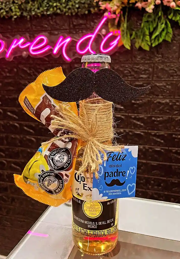 Festeja el Día del Padre con una cerveza Coronita decorada, MM maní y una tarjetica personalizada. Un detalle único para hacer sentir especial a papá. #FelizDiaDelPadre #DetallesConAmor