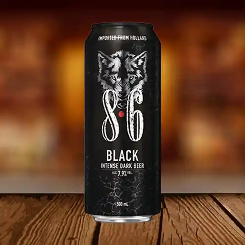 Grado alcohol: 7.9 Referencia: 500 ML Certificaciones: Agua de manantial, cebada de alta calidad, alcohol proveniente de la fermentacion. De color oscuro y mucho carácter, pero de textura ligera y cremosa, 8.6 Black emite un aroma tranquilizador de cacao y granos de café recién quemados. En el paladar puedes saborear sabores cálidos, dulces y amargos. Un final de cerezas y regaliz completan una cerveza intensa y robusta que es compleja en sabor y tiene un equilibrio perfecto. 8.6 Black es una cerveza oscura que se elabora con agua mineral natural de la primavera de Bavaria, malta de cebada, maltosa, caramelo y lúpulo.