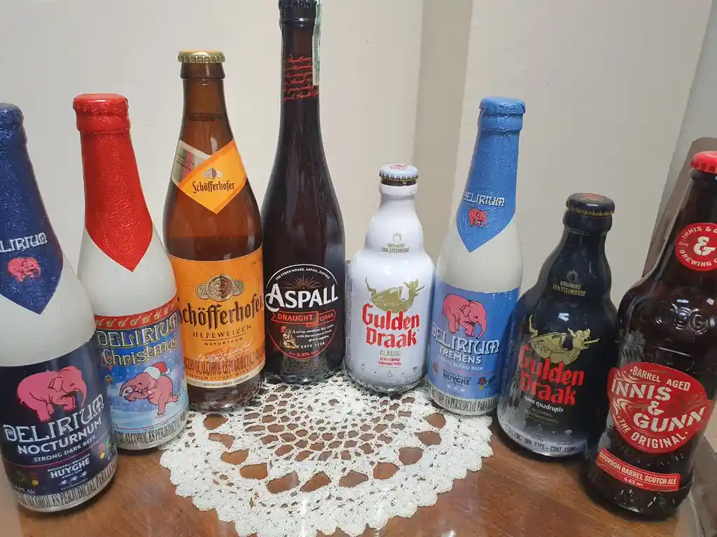 Pack 8 Cervezas Contiene 1 Delirium Tremens. 1 Deliri Nocturna. 1 Delirium Chistmans. 1 Shofferhofer.1 Aspall. 2 Gulden Draak. 1 Innis Y Gunn. . .