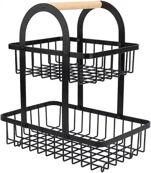 Cestas de frutas perfectas de 2 niveles para cocinas, adecuadas para almacenar frutas frescas pero no ocupan mucho espacio en la encimera. El diseño transpirable del frutero de 2 niveles permite que el aire circule mejor, su base elevada evita que tu fruta toque la mesa, manteniendo la fruta fresca y limpia. Hecho de material de acero, pintado con recubrimiento en polvo negro, resistente al óxido y al agua. La cesta de almacenamiento de verduras tiene un cómodo mango de madera que no dañará tus manos. Puede almacenar perfectamente tus verduras, frutas, aperitivos o pequeños pasteles que se adaptan a cualquier estilo y decoración. No solo los estantes de frutas, la cesta de pan puede desempeñar muchos papeles en tu vida. El estante negro para verduras para cocina puede contener plátanos, pan, pequeños artículos del hogar y suministros de oficina. El soporte de almacenamiento de pan con una buena capacidad de peso es fácil de instalar y llevar.