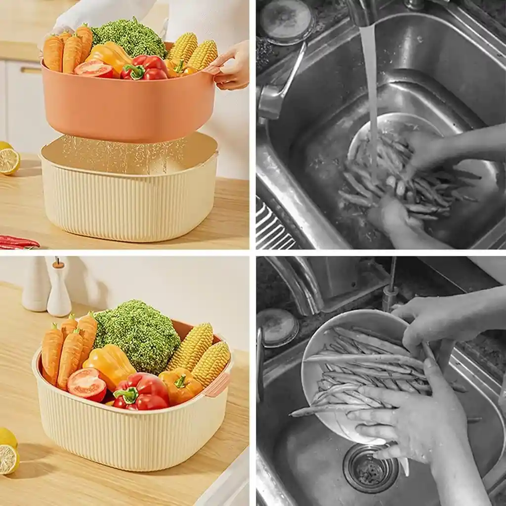 Esta cesta escurridor para verduras, frutas y alimentos es un utensilio imprescindible para cualquier cocina moderna. Diseñada para facilitar el lavado y secado de tus ingredientes, su estructura de doble capa permite separar el agua de manera eficiente, garantizando un drenaje rápido y limpio. Su diseño hueco evita que el agua se acumule, manteniendo la encimera seca y los alimentos frescos. Es perfecta para quienes valoran la practicidad y el orden en la preparación diaria de comidas. Fabricada en materiales duraderos como PET y PP de alta resistencia, esta cesta no se deforma ni se rompe fácilmente, asegurando un uso prolongado. Su forma compacta ahorra espacio y es fácil de almacenar, mientras que sus superficies lisas facilitan la limpieza a mano o en lavavajillas. Si buscas comodidad, higiene y eficiencia al preparar tus alimentos, esta cesta escurridor es la opción ideal para tu cocina. Medida: 28 x 12 cm
