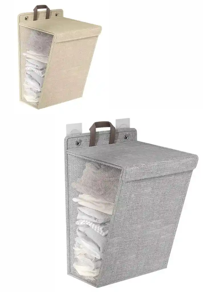 Diseño Plegable: dobla y guarda fácilmente esta cesta de lavandería cuando no esté en uso, ahorrando un espacio valioso Diseño adhesivo: Esta cesta de ropa se adhiere de forma segura a las paredes, asegurándose de que permanezca en su lugar mientras sostiene su lavado Uso multifuncional: no solo para la ropa, también puede usar esta cesta para guardar toallas, juguetes y otros artículos Instalación sin perforaciones: no hay necesidad de perforar o dañar sus paredes, simplemente pegue esta cesta a cualquier superficie lisa para una fácil instalación Alta resistencia: hecha de materiales de tela duraderos, esta cesta de tela para colgar en la pared puede soportar cargas pesadas sin doblarse ni romperse Especificación: Color: beige, gris. Material: tela.