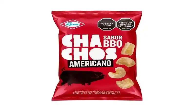 Descripción: Crujientes chicharrones con un delicioso y auténtico sabor BBQ americano. Ideales para disfrutar como pasaboca en cualquier momento del día. Producto de la tradición Ramo, garantizando calidad y frescura. Sabor: BBQ (Barbacoa). Contenido neto: 50g. Advertencias: Contiene sellos de "Exceso en Sodio" y "Exceso en Grasas Saturadas".