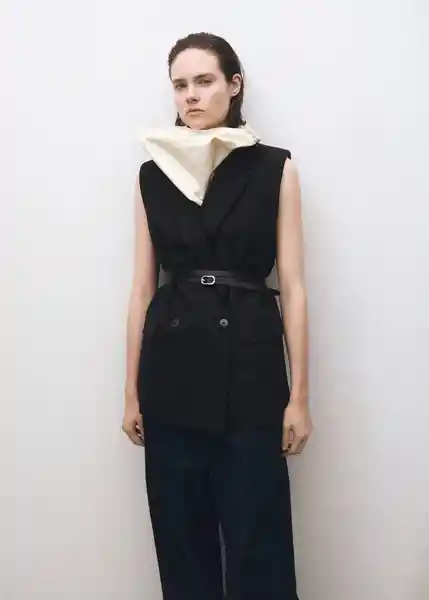 Cierre de Doble Botonadura Colección Selection Cuello Pico Con Solapa Diseño Midi Diseño Recto Dos Bolsillos de Solapa Laterales Forro Interior Sin Mangas Solapas Con Muesca Tejido Mezcla de Lana - 87054426_99.