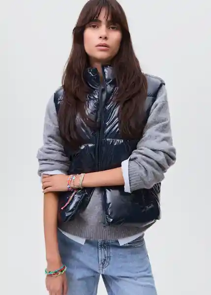 Cierre de Cremallera Cuello Perkins Diseño Recto Dos Bolsillos Laterales Sin Mangas Tejido Acolchado Tejido Efecto Brillo - 17055784_56.