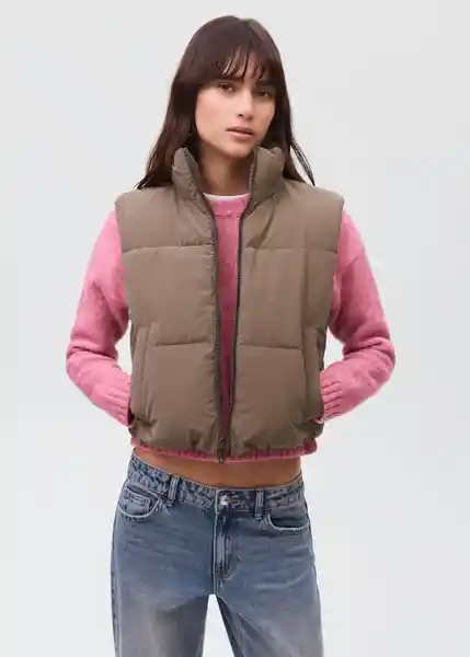 Cierre de Cremallera Cuello Perkins Diseño Crop Diseño Recto Dos Bolsillos Laterales Sin Mangas Tejido Acolchado - 17055783_30.