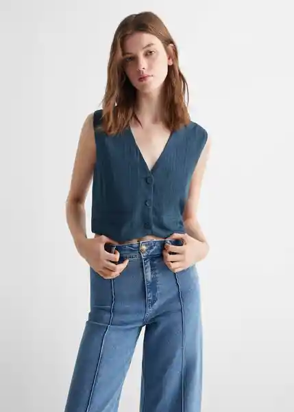 Cierre de Botones Cierre Delantero Cuello Pico Diseño Crop Diseño Recto Dos Bolsillos de Ribete Con Botón en la Parte Delantera Sin Mangas - 67064465_56.