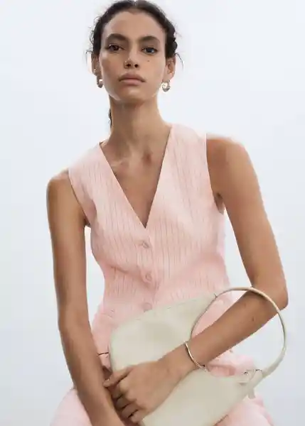 Cierre Delantero Con Botones, Cuello Pico, Diseño de Rayas, Diseño Recto, Dos Bolsillos de Ribete Delanteros, Forro Interior, la Modelo Mide 178 cm y Lleva Una S, Sin Mangas, Tejido Mezcla de Lino, Total Look - 77073264_81.