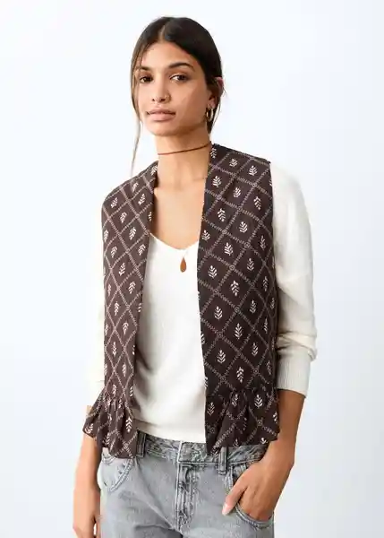 Detalle de Volantes en el Bajo Diseño Recto Escote de Pico Estampado de Hojas Sin Cierre Sin Mangas Tejido de Algodón - 27032545_30.