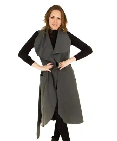 Composición: Algodón, spándex, poliamida, viscosa. Descripción Técnica: Chaleco asimétrico talla única con solapa curva, bolsillos laterales y cinturón. Sabías que aunque es largo atrás con el chaleco Luciana no te ves bajita? Es corto adelante y de manera asimétrica va alargándose atrás. Tienes unas solapas que te puedes poner sobre los hombros para que tape parte del brazo o adelante y dejarlas colgar. Con el cinturón arriba de tu ombligo se ve más pequeña la cintura, te lo puedes anudar adelante o atrás para entallar y crear diagonales que estilizan, también puedes reemplazarlo por un cinturón tuyo de cuero en contraste.