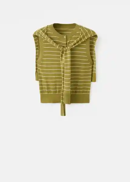 Cierre Delantero Con Botones Cuello Redondo Diseño Recto Estampado Rayas Jersey Combinado Tejido de Punto Fino - 27072540_36.