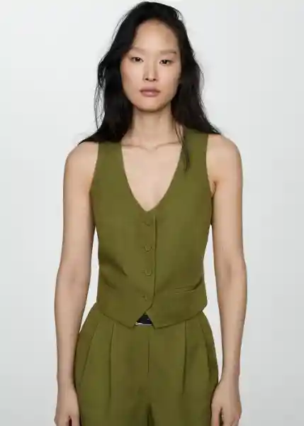 Cierre Delantero Con Botones Cuello Pico Diseño Recto Dos Bolsillos de Ribete Laterales Forro Interior Sin Mangas Tejido Mezcla de Algodón y Lino Tirantes Anchos Total Look - 67069229_37.