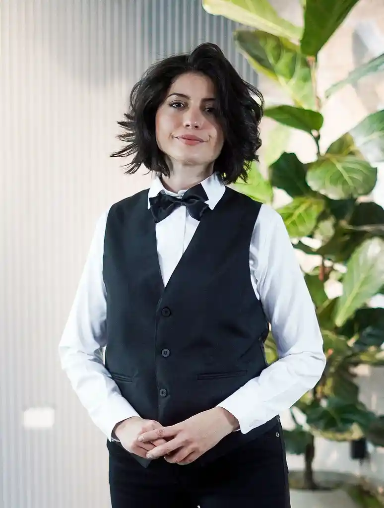 100% Poliester. Tres botones, dos bolsillos frontales y hebilla ajustable en la espalda.