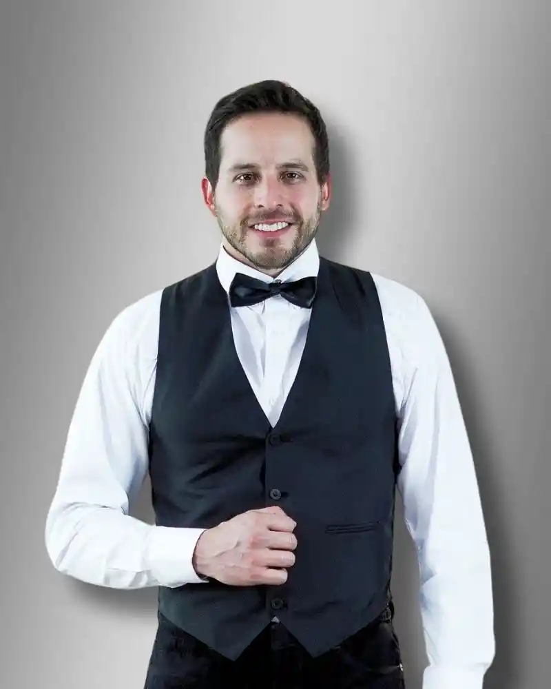 100% Poliester. Tres botones, dos bolsillos frontales y hebilla ajustable en la espalda.