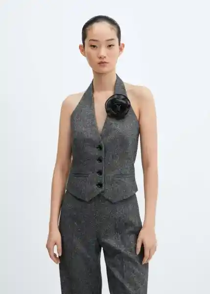 Adorno de Flor Cierre Delantero Con Botones Cuello Halter Cuello Pico Diseño Recto Dos Bolsillos de Ribete en la Parte Delantera Forro Interior Sin Mangas Tejido Mezcla de Lana Reciclada Total Look - 57058279_99.