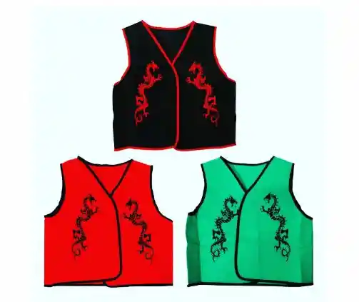 Chaleco negro con ribete rojo. Chaleco rojo con ribete
