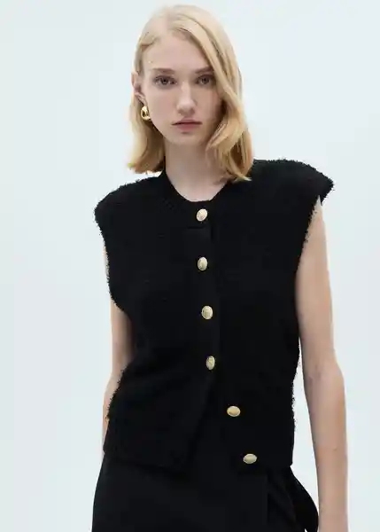 Cierre Delantero Con Botones Cuello Redondo Diseño Estándar Diseño Recto Punto Medio Sin Mangas Tejido de Punto Terminaciones en Canalé - 87090452_99.