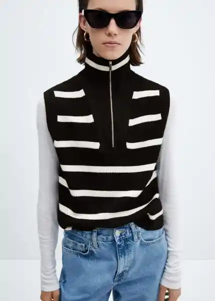 Cierre de Cremallera en el Cuello Cuello Alto Diseño Recto Disponible Plus Sin Mangas Tejido de Punto Terminaciones en Canalé - 57064396_99.