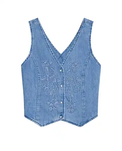 Talla M Tipo Para Mujer en Denim Slim Fit (Silueta Ajustada). Escote en V Favorecedor Perilla de Botones Funcionales Detalle Cruzado en la Espalda Que Aporta Toque Moderno. Elaborada en Denim 100% Algodón Versátil Para Uso Individual o en Capas. Bordado Delicado y Distintivo en el Frente. Ean- 419G001Azu184140 Plu- 1111133160178.
