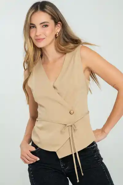 En Tejido Plano Fondo Entero Cruzado en la Parte Delantera Botonado Con Botón 32L Pasadores y Cinturón en la Misma Tela Corte en Centro Espalda Silueta Semi Ajustada.