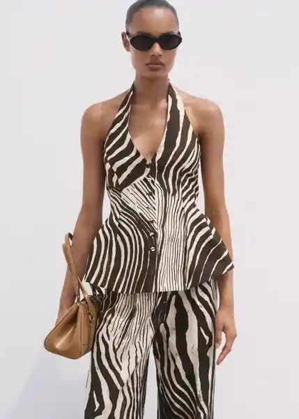 Cierre Delantero Con Botones Corte Peplum Cuello Halter Espalda Con Escote Estampado Cebra Forro Interior 100% Algodón Sin Mangas Tejido Mezcla de Lino y Algodón Tirantes Finos Total Look - 17083332_32.