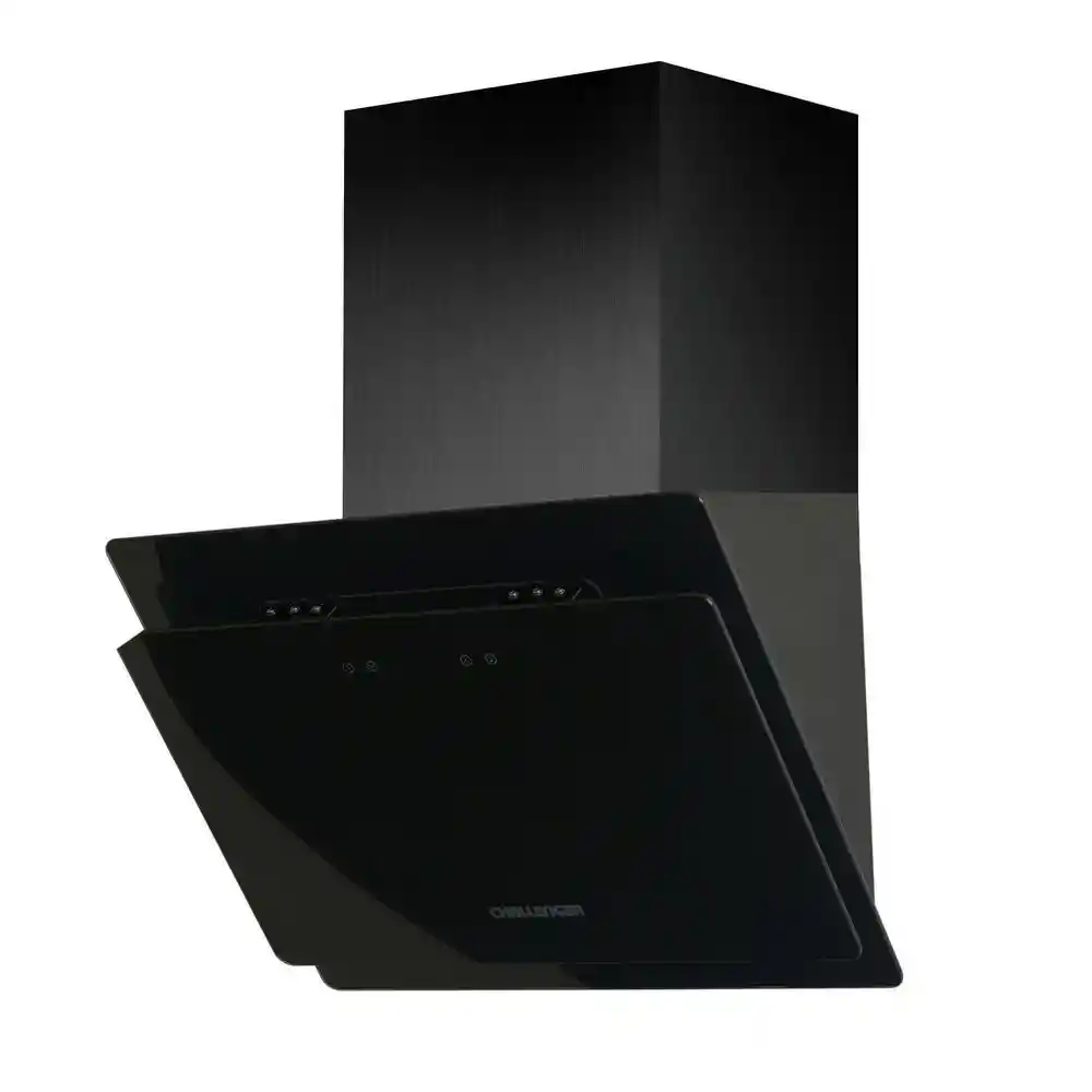 Es una campana angular de 76 cm con cristal templado color negro, con 3 velocidades de operación que garantiza una extracción eficaz de olores, con control digital tipo soft touch con pantalla blue LCD y temporizador, iluminación led, filtros atrapa grasa en aluminio y con carbón activado.