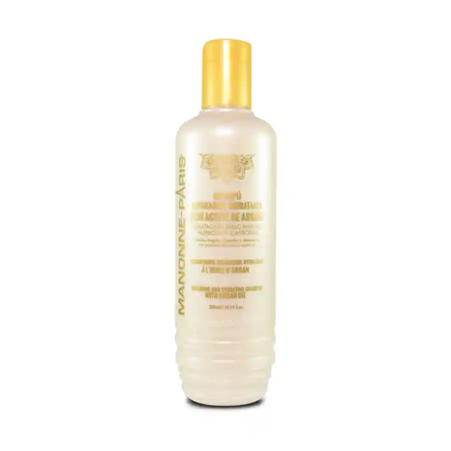 CHAMPU REPARADOR HIDRATANTE CON ACEITE DE ARGÁN HIDRATACIÓN, BRILLO INTENSO, NUTRICIÓN Y ELASTICIDAD. Cabello frágiles, dañados y debilitados por procesos térmico y químicos. CONTIENE: - Champu 300ml Especialmente formulada para los cabellos frágiles, dañados y debilitados por el uso de la plancha y procesos químicos de color y estructurales. Limpia suavemente la fibra capilar y revive el cabello dejándolo nutrido, fuerte y manejable. Formula de alto desempeño enriquecida con Aceite de Argán de alto poder antioxidante que restaura la elasticidad mientras aporta hidratación y brillo intenso. MODO DE EMPLEO: Aplicar con un suave masaje en cabello y cuero cabelludo húmedos. Continuar agregando agua para activar la espuma. Enjuagar hasta total aclarado y continua con la aplicación de la Mascarilla Capilar Reparadora Hidratante con Aceite de Argán.
