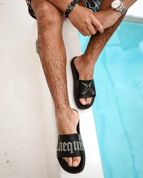 EL TALLAJE DE CADA CHANCLA ES PEQUEÑO. RECOMENDAMOS SELECCIONAR UNA TALLA SUPERIOR A LA HABITUAL (VER IMAGEN DE TALLAS). Olvídate de esas chanclas plásticas, feas y de mala calidad que se dañan con pocos pasos. Dale estilo a tus salidas en estas vacaciones. Te presentamos las nuevas chanclas LAEQUIS, exclusivas, con diseño top y sobretodo las más duraderas y guerreras del mercado. Lo mejor de todo con este modelo de chanclas es que no vas a pasar desapercibido, ni cuando las luces se apaguen. Innovador diseño que alumbra en la oscuridad generando un status extra en todo momento del día. ¿Sabe que es lo mejor de todo? Que son unas sandalias ideales tanto para hombre Fabricación y diseño 100% Colombiano. CARACTERÍSTICAS: Gran calidad por donde la mires. Diseño exclusivo que solo encuentras en LAEQUIS. Te obsequiamos la bolsa de regalo. ESPECIFICACIONES: Peso aprox: 490g. Tallaje Hombres: 39/40 - equivale a: 8,5/9 US 41/42 - equivale a: 9,5/10 US 42/43 - equivale a: 10,5/11 US Tallaje Mujeres: 36 - equivale a: 6 US 37 - equivale a: 7 US 38 - equivale a: 8 US Diseño: Negro sobre negro. INCLUYE: 1 Par de Chanclas LAEQUIS. 1 Bolsa de regalo.
