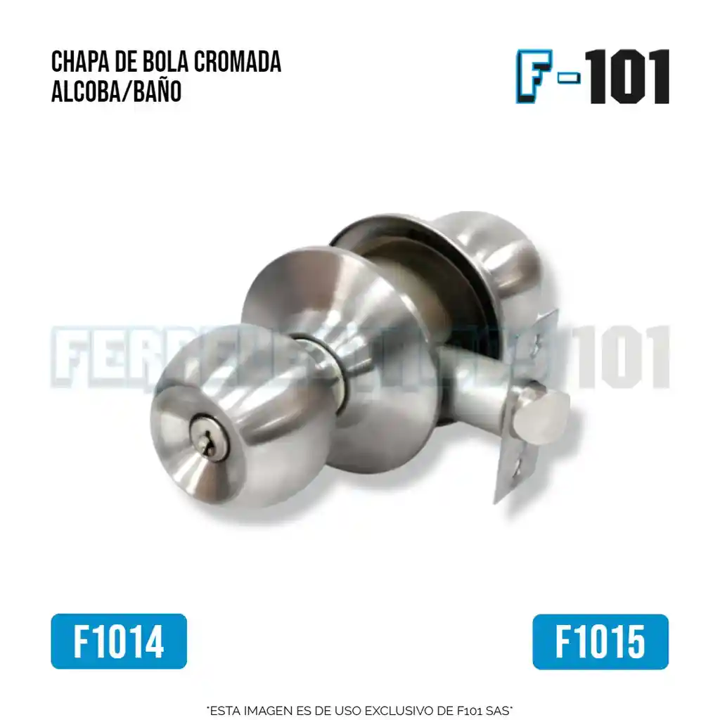 Cerradura metálica con acabado cromada, para alcoba. Se caracteriza por su diseño en forma de esfera, lo que facilita su uso y ofrece una apariencia estética agradable.