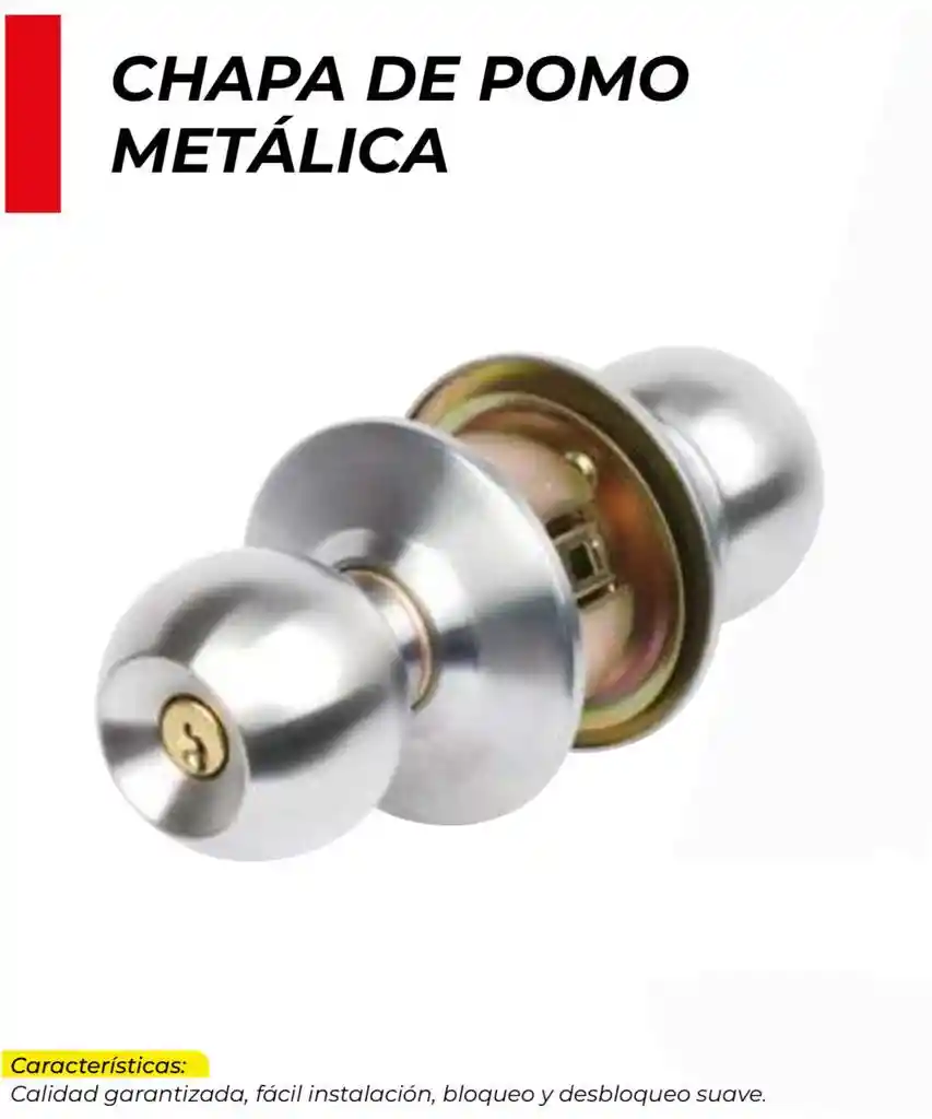 CERRADURA PARA PUERTA POMO METALICO CROMADO