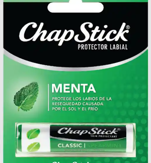 es una marca de bálsamo labial que se utiliza para tratar y prevenir la resequedad de los labios. ChapStick Menta: Protege de la resequedad causada por el sol o el frío.