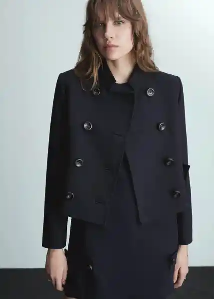 Cierre de Doble Botonadura, Cuello de Tira, Diseño Crop, Diseño Recto, Forro Interior, la Modelo Mide 178 cm y Lleva Una S, Manga Larga, Total Look - 77076759_69.