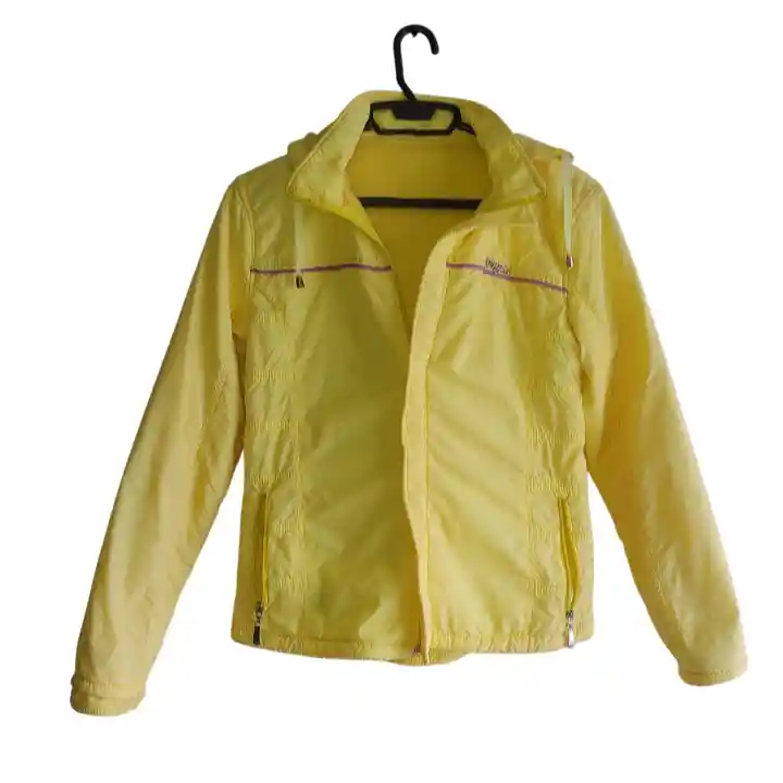 Chaqueta Amarilla Con Capota Abrigadora Talla S. Chaqueta de color Amarillo, Talla S, Nueva, En perfecto estado, Con dos bolsillos en frente funcionales, Con capota y esta es removible si se quiere, Muy suave. Medidas: De largo 58 centímetros, De axila a axila aprox. 44 centímetros y de Brazo 57 centímetros