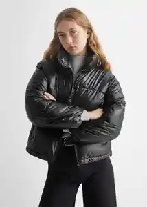 Cierre de Cremallera Diseño Acolchado Diseño Recto Dos Bolsillos de Solapa Efecto Charol Manga Larga - 57005135_99.