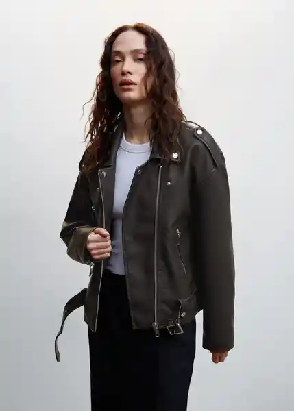 Botones Metálicos Cierre de Cremallera en la Parte Delantera Cinturón Ajustable Cuello Pico Con Solapa Diseño Oversize Efecto Desgastado Efecto Piel Manga Larga Tres Bolsillos de Cremallera - 47076320_30.