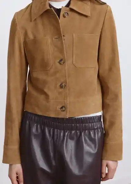 100% Piel Caprino Cierre Delantero Con Botones Cuello Camisero Diseño Corto Diseño Recto Dos Bolsillos de Parche en la Parte Delantera Forro Interior Manga Larga Piel de Ante - 27045813_16.
