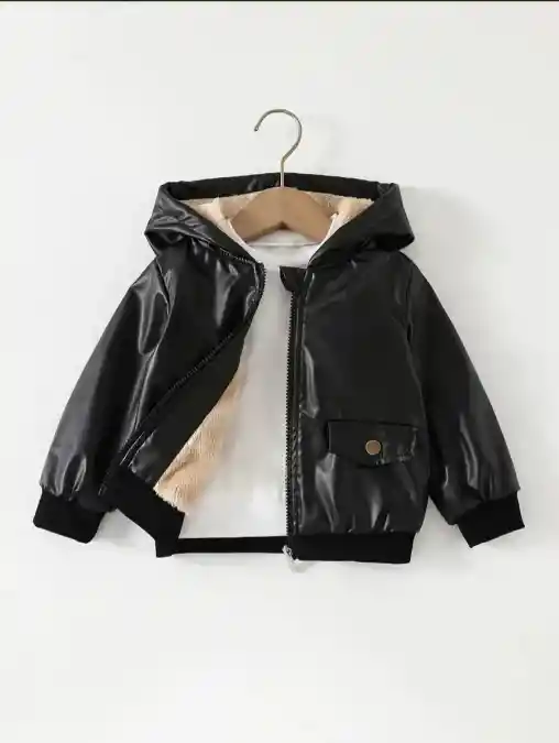 Chaqueta Bomber Infantil Cuerina Negra Forrada Con Capota 2-3 Años
