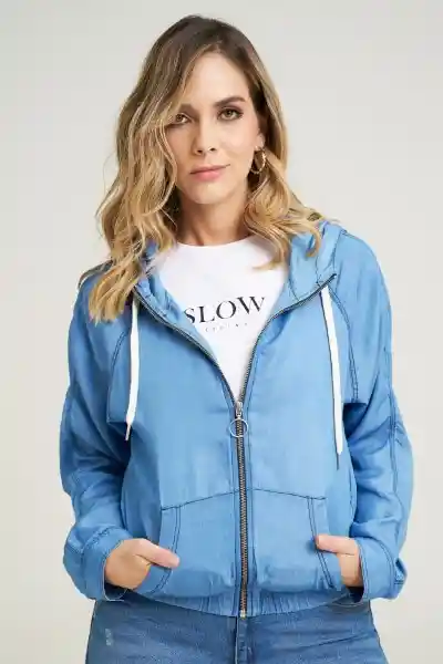 Tipo Bomber en Tencel Lavado Medio Cremallera Metálica Chompa y Elástico en Ruedo Bolsillos en Frente Manga Larga Con Puño y Charretera.
