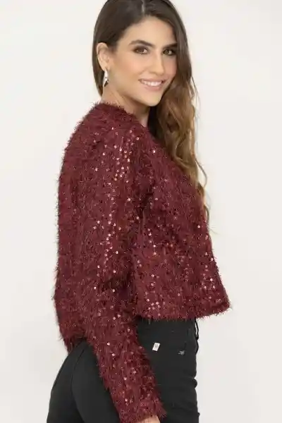 Tejido Plano Con Lentejuela Manga Larga Abierta Largo N Pretina Forro Interno.