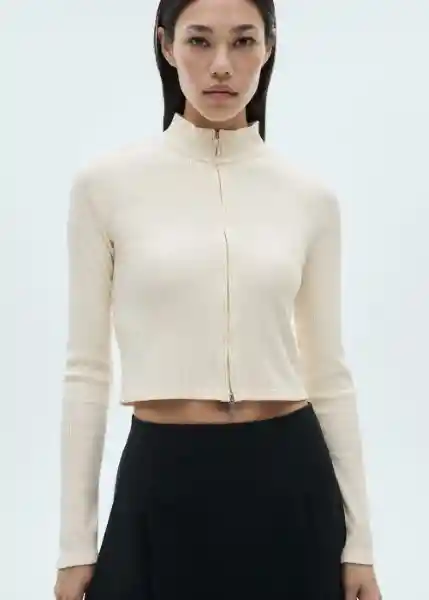 Cierre Delantero Con Cremallera Cuello Perkins Diseño Crop Diseño Entallado Manga Larga Punto de Canalé Tejido de Punto Fino - 67046030_05.