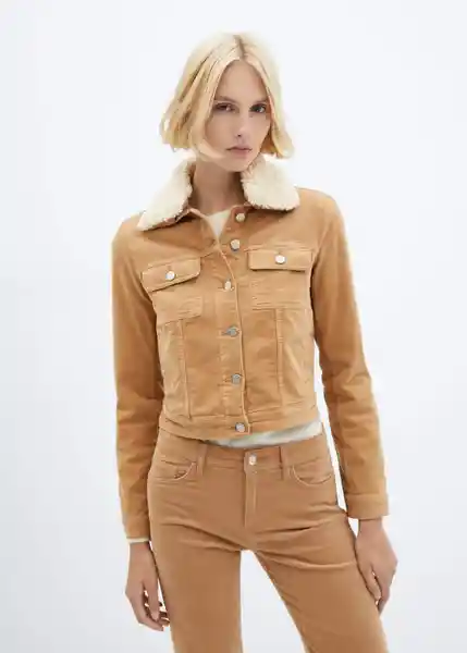 Cierre Delantero Con Botones Cuello Camisero Cuello de Borreguito Desmontable Diseño Corto Diseño Recto Dos Bolsillos de Parche Con Botón en el Pecho Dos Bolsillos Laterales Manga Larga Con Puños Abotonados Tejido de Pana Tejido Mezcla de Algodón - 57037724_09.